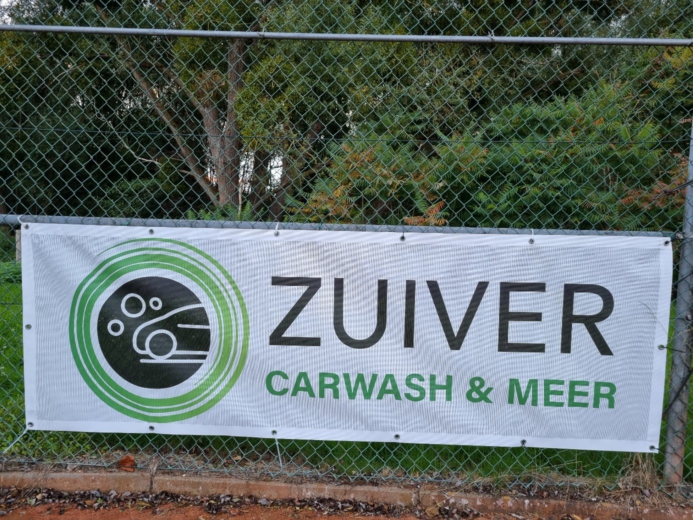 Buiten langs baan 2 hangt een sponsordoek van Zuiver Carwash en Meer. Dit bedrijf is te vinden op de Dr. Nolenslaan 122 A in Sittard. | ![]() |
