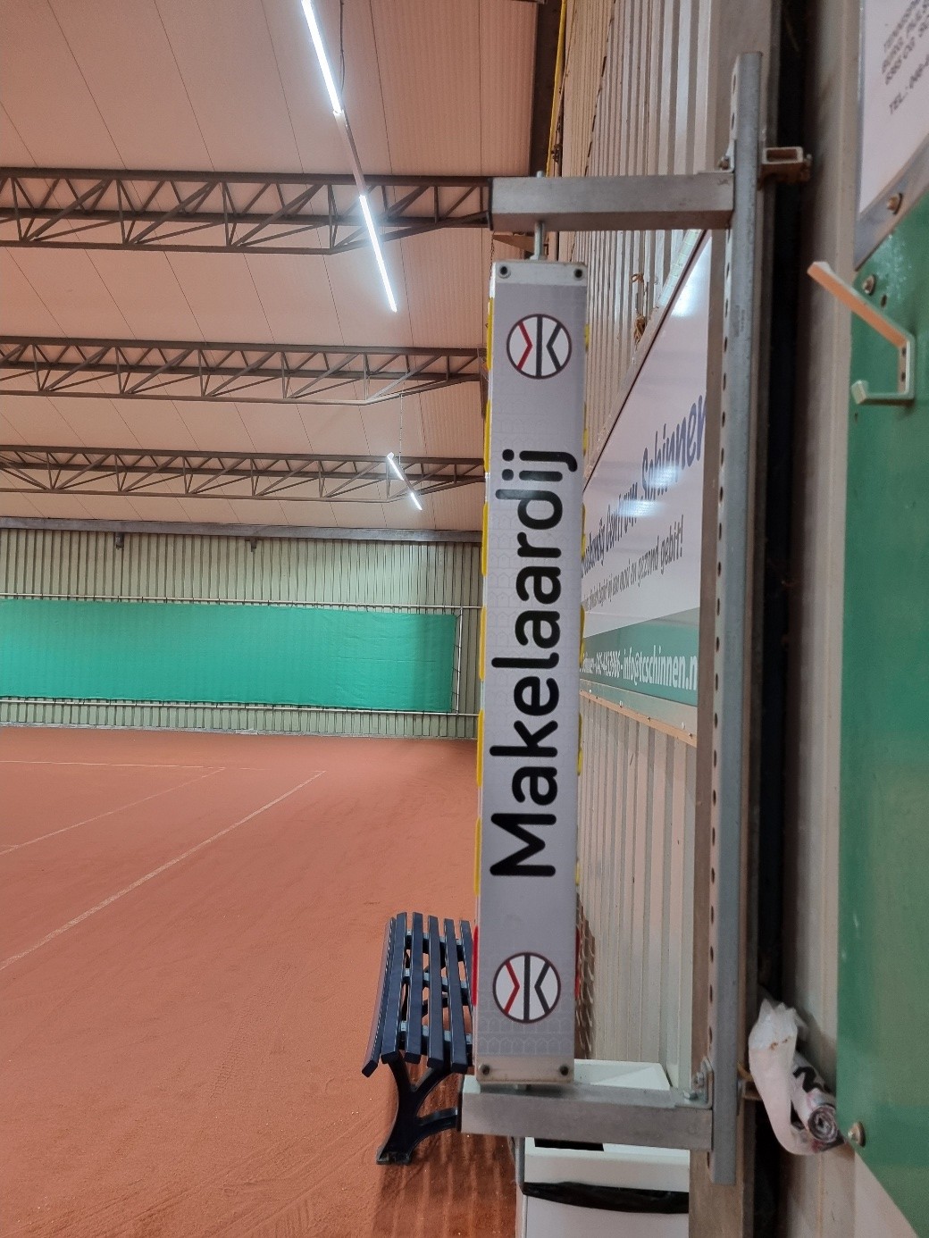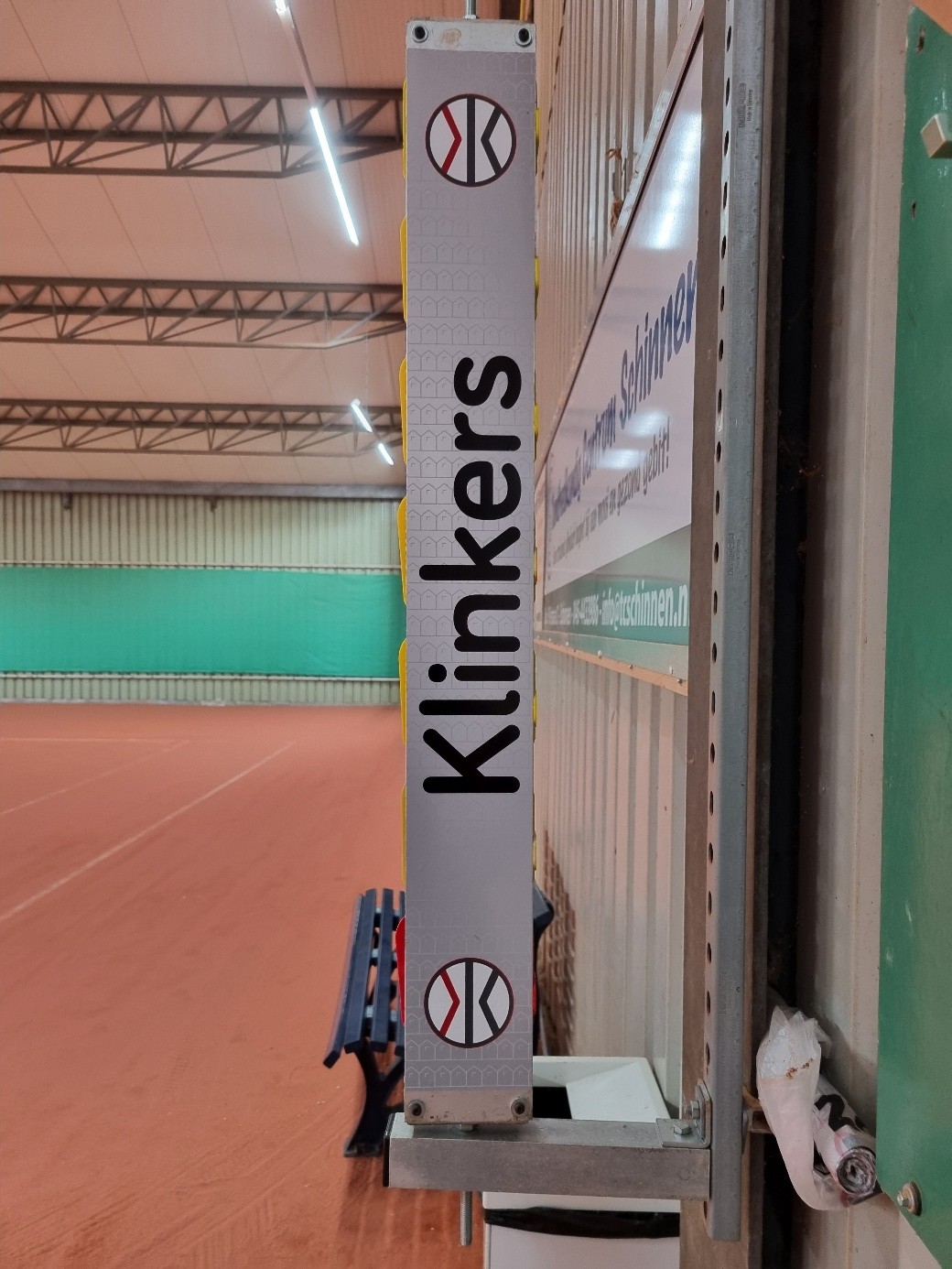 De scoreborden op alle banen zijn voorzien van het logo en de naam van Klinkers Makelaardij, gevestigd op Dr. Poelsstraat 14 te Schinnen. | ![]() ![]() |